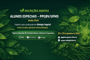 O Programa de Pós-Graduação em Biologia Vegetal (PPGBV), do Instituto de Biociências da UFMS, está com inscrições abertas para Alunos Especiais em disciplina de seus cursos de Mestrado e Doutorado, com ingresso no período letivo 2025/Verão.