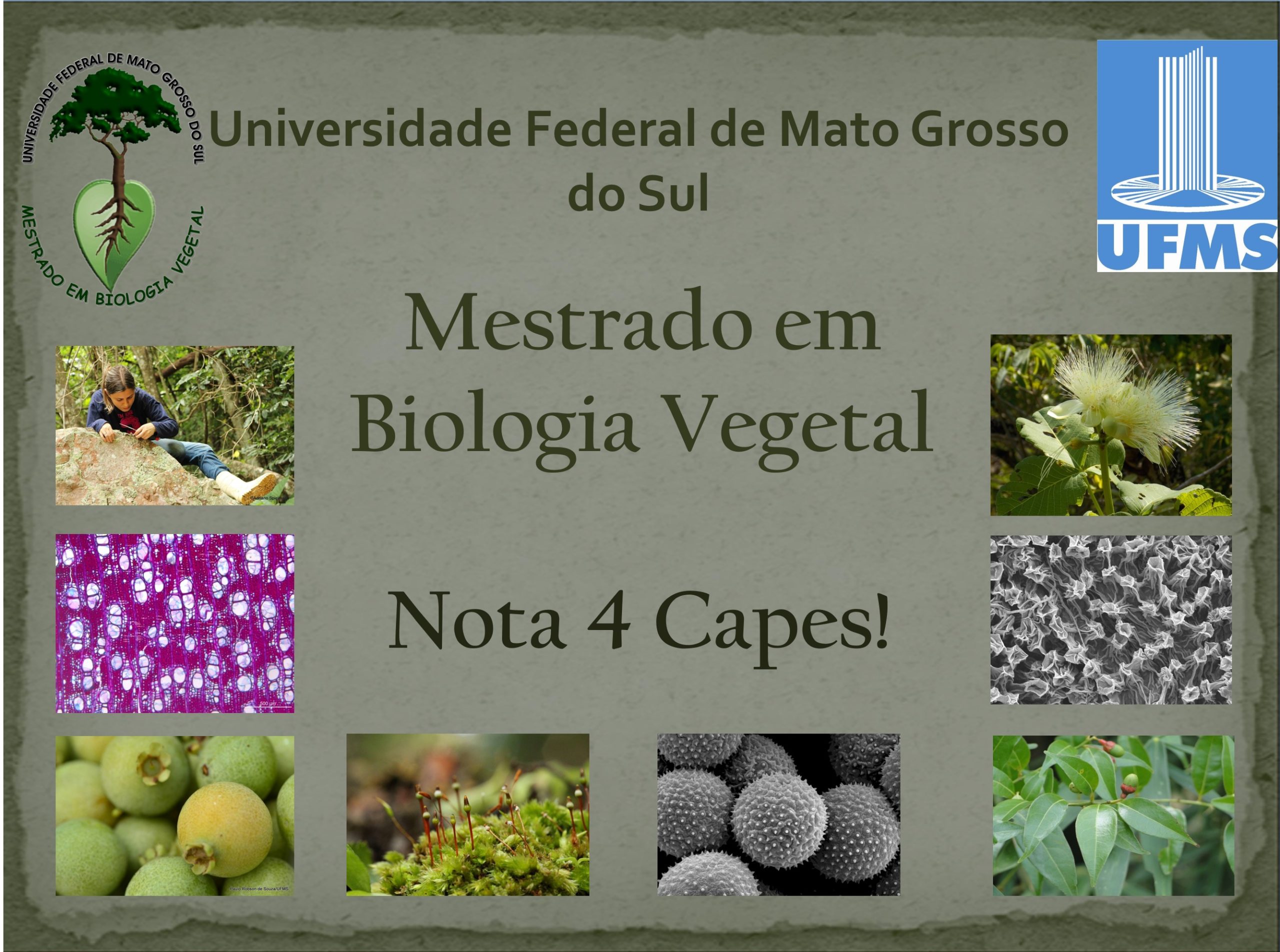 Capes confere Nota 4 ao PPGBV! O Programa de Pós-Graduação em Biologia Vegetal da UFMS (PPGBV/UFMS) alcançou Nota 4 na avaliação quadrienal da Capes! Esse resultado é fruto de anos de trabalho desenvolvido pelos docentes, discentes/egressos, da Pró-Reitoria de Pesquisa e Pós-graduação com a ajuda das agências financiadoras das pesquisas desenvolvidas no PPGBV/UFMS. Todos estão comprometidos com o papel estratégico ...